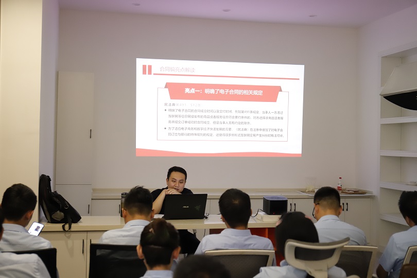 活動中,宋律師結合實際案例就簽訂合同過程中會遇到哪些法律問題、 新增加民法典的相關內容、 在工作和生活中遇到的法律問題等與員工生活關聯(lián)密切的法律知識,進行了深入細致的講解。通過生動的案例、通俗易懂的語言,為企業(yè)員工普及法律知識。